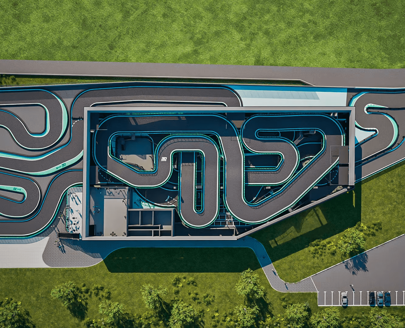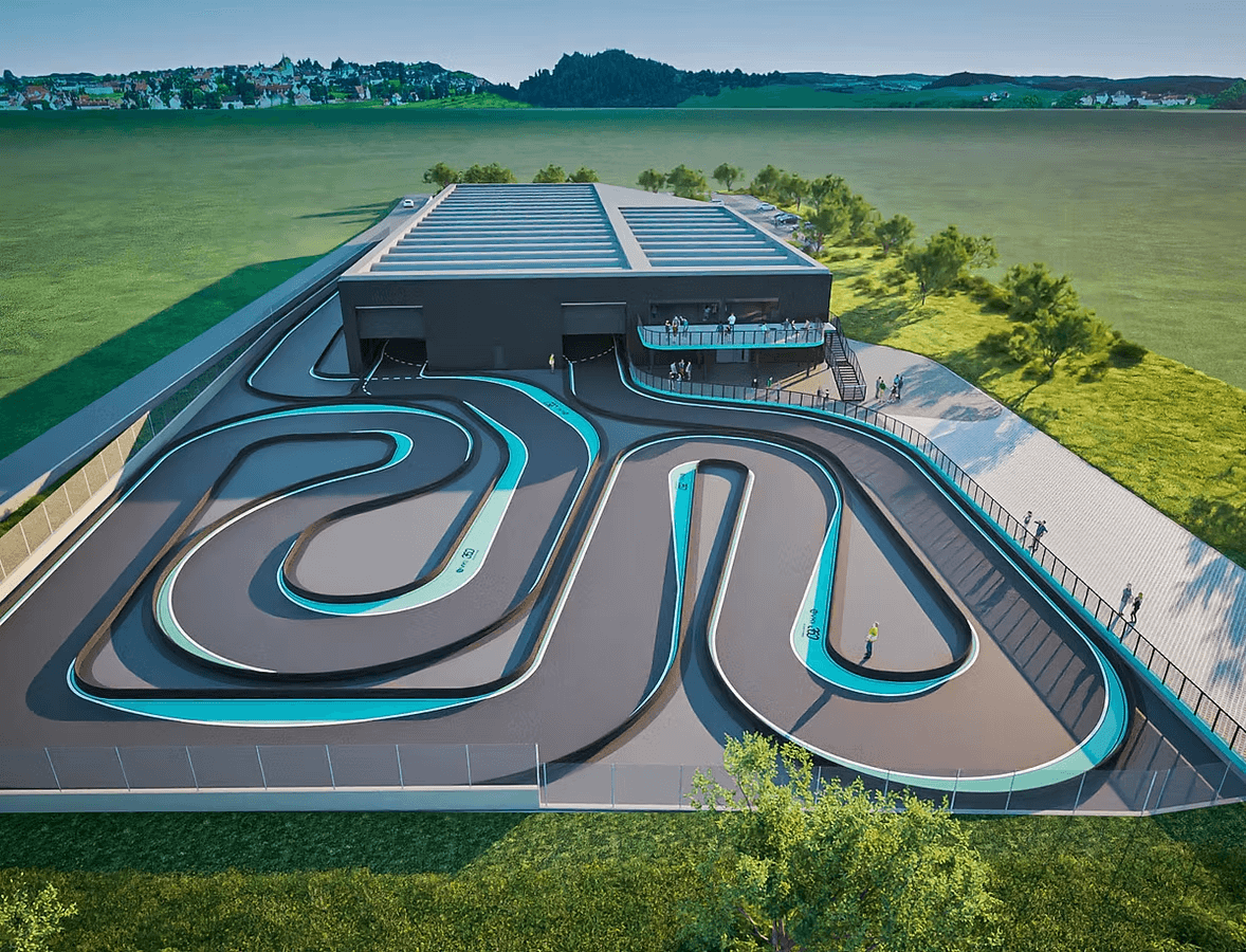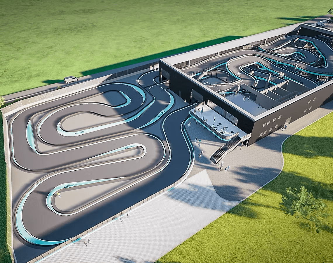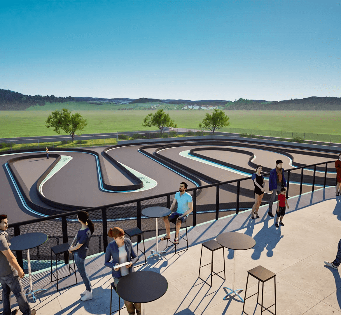 Un tracciato che integra indoor & outdoor con una lunghezza totale di 1.250 m, per rendere più completa ed emozionante possibile l’esperienza in pista. Il tutto con curve e sezioni studiate per mantenere sempre alto il livello di coinvolgimento e adrenalina, con dettagli da esplorare giro dopo giro.