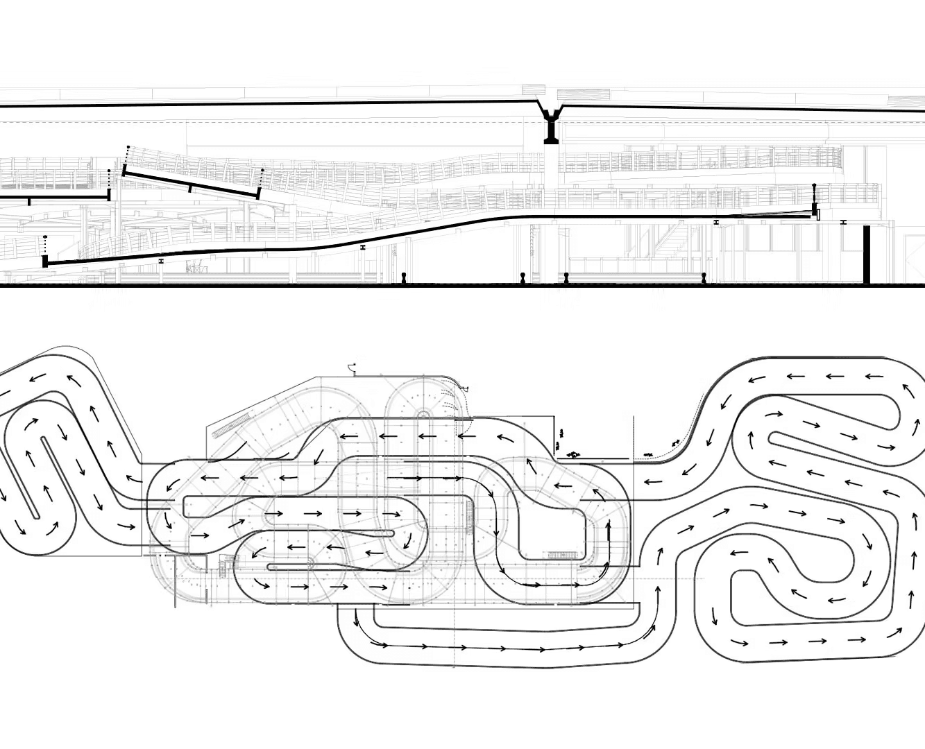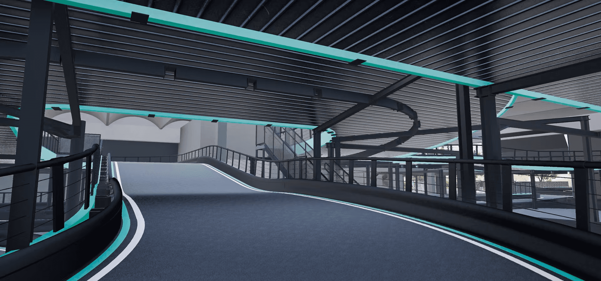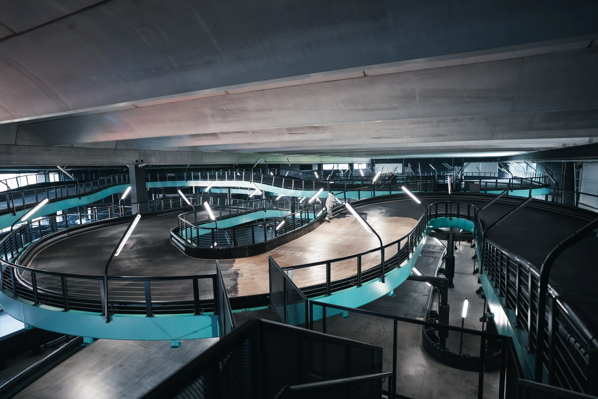 La struttura Multi-Level, progettata insieme a 360 Karting, si sviluppa su tre livelli. Con un’altezza massima di 4,5 metri, livelli intermedi e 11 cambi di pendenza tra salite e discese. Tutta la sezione sopraelevata copre circa 400 metri dei 750 metri totali della pista indoor.