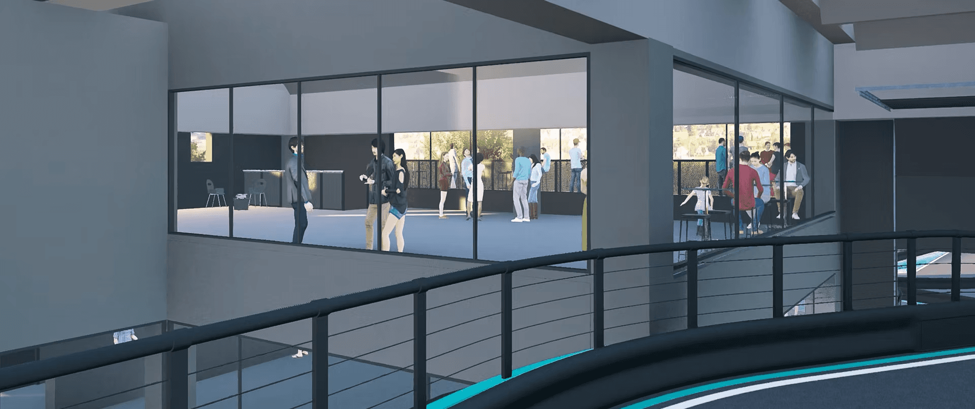 Al primo piano è in fase di allestimento anche una sala eventi di 200 mq, pensata per eventi aziendali, meeting ed eventi privati. Completano il progetto un parcheggio con circa 90 posti auto e un’ampia area verde esterna.