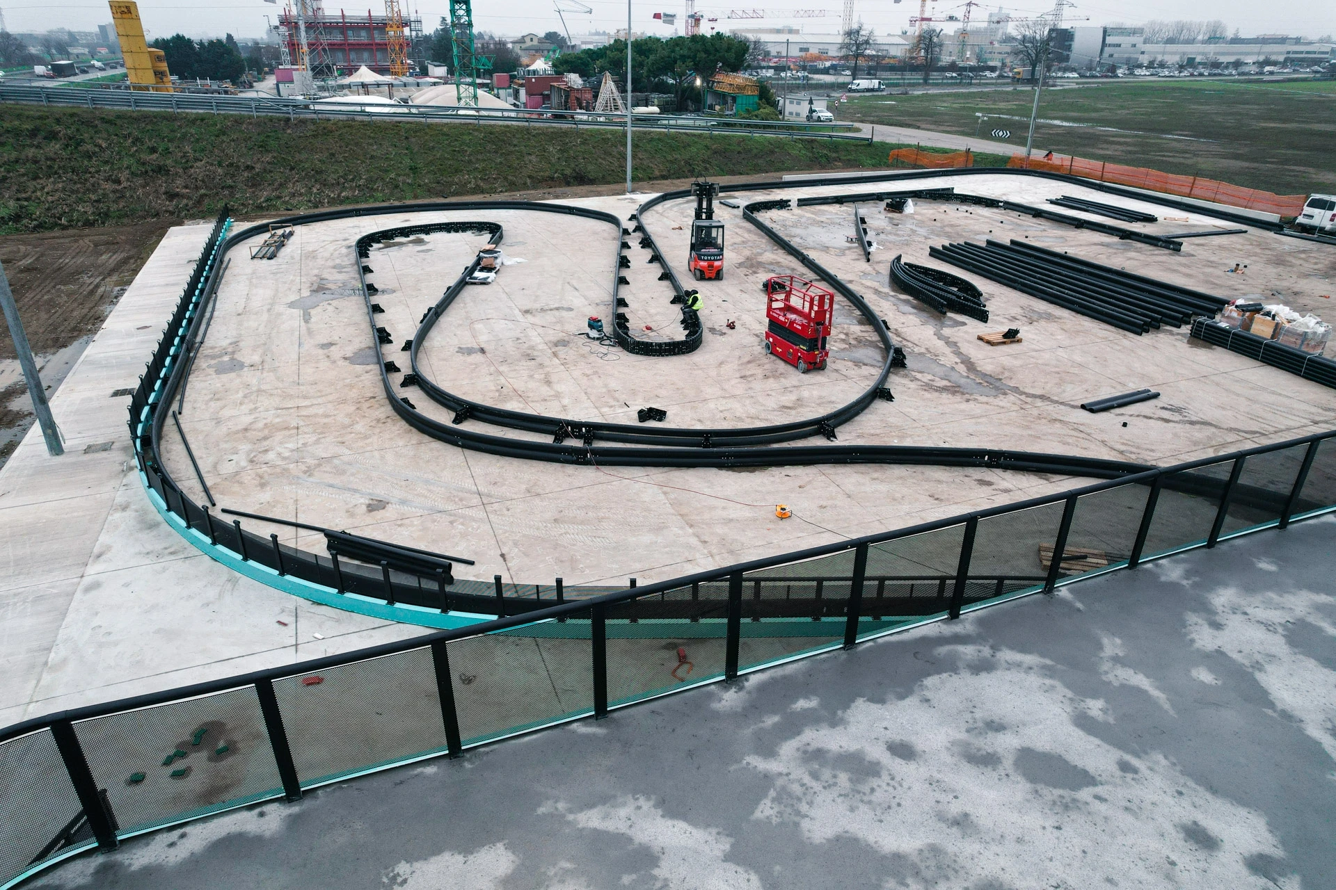 In questi giorni nel nostro cantiere di Imola si è completata una delle fasi più importanti del progetto: la realizzazione della struttura sopraelevata dellla sezione indoor della nostra nuova pista.