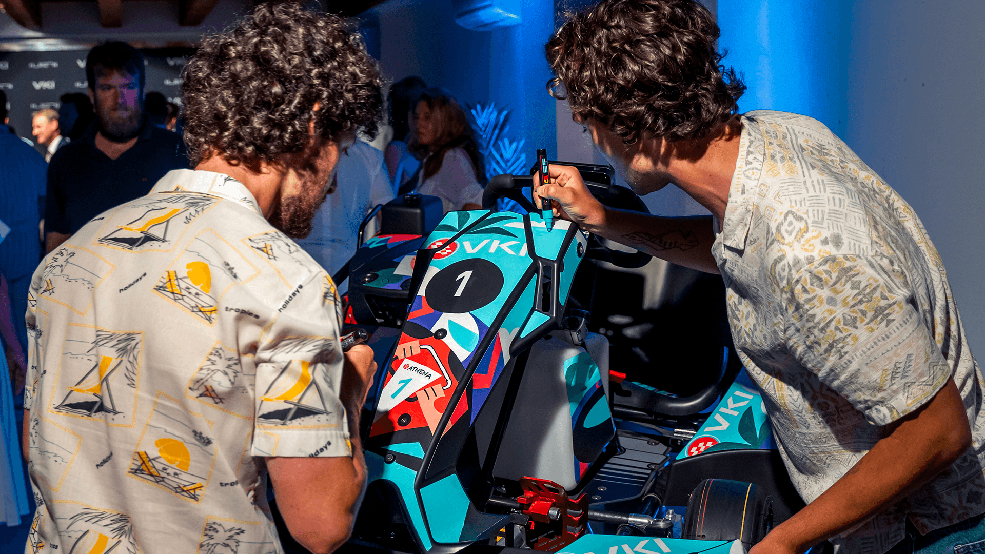 Durante la serata sono state svelate per la prima volta le nuove livree dei nuovi kart theway®, realizzate dai 2BROS, duo di illustratori vicentini che si è esibito con un live painting durante l’evento.